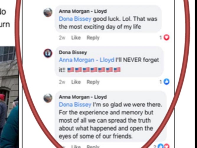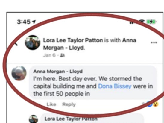 Anna Morgan-Lloyd of Florida is yet another suspect who revealed their involvement via Facebook. In response to a comment asking if she had gone inside the Capitol building, Lloyd wrote, “Yes Ma’am! Probably in the first group of 100-200 people. Picking glass out of my purse.”