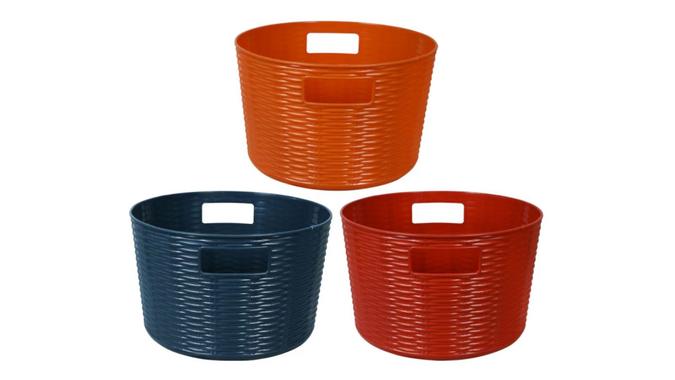 Organize and store various home goods like holiday decorations inside Essentials harvest round baskets. Each round basket comes in your choice of three rustic colors and has built-in handles on the sides for transportation ease.