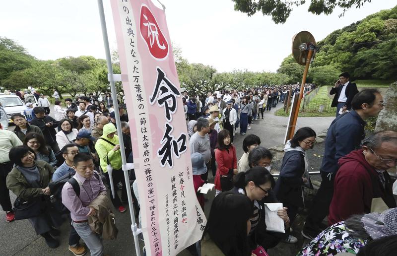 Shrines with connections to the Imperial family or the new era name were popular destinations during the holiday period. The possible remains of what is thought to be the home of Otomo no Tabito, who wrote the introduction to "Umenohana no Uta 32 Shu" in the "Manyoshu," which is the source of the new era name, are located on the grounds of the Sakamoto Hachimangu shrine in Dazaifu, Fukuoka Prefecture. While the shrine usually gets about 20 visitors per day, during the 10-day holiday more than 5,000 people came, fatiguing the elderly parishioners and others who dealt with the surge in visitors without a break.