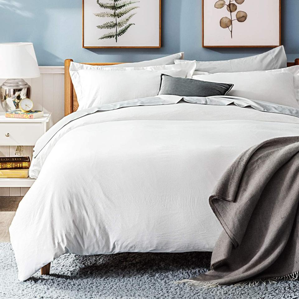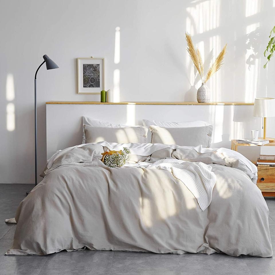 Wait—linen that doesn’t wrinkle? Yep, and according to one five-star reviewer, “This duvet washed and dried beautifully, no shrinking or fading, and [I used] a light iron around the buttons for the first washing only.” Not only is Bedsure’s linen duvet set easy to care for, it’s also gorgeous: “[It has] excellent quality double stitching on each pillow sham as well as the duvet cover itself...well-made coconut buttons with four holes in each for stitching strength. Excellent buy, very durable and will last for years with care.”