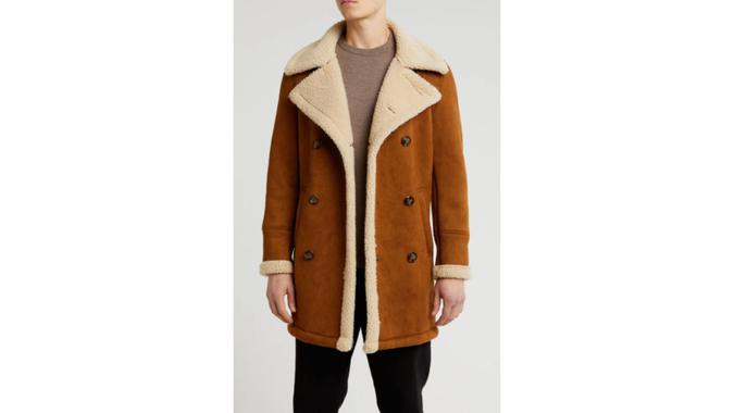 Braveman Faux Shearling Lined Double-Breasted Overcoat