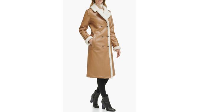 Kenneth Cole New York Faux Shearling and Faux Leather Trench Coat