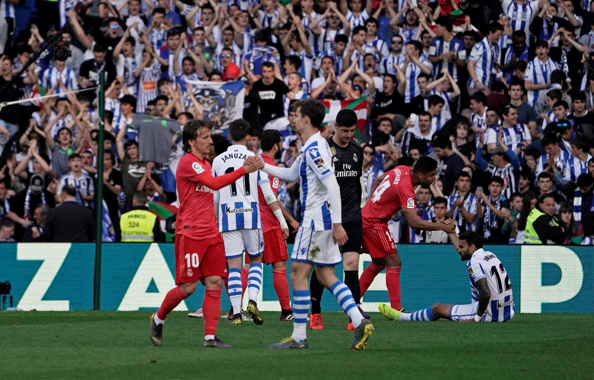 SAN SEBASTIAN, Spain (Reuters) - Real Madrid's stuttering season continued as they were reduced to 10 men and then slumped to an 11th La Liga defeat of the campaign by going down 3-1 at Real Sociedad on Sunday.