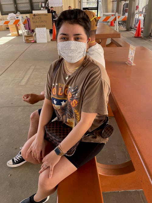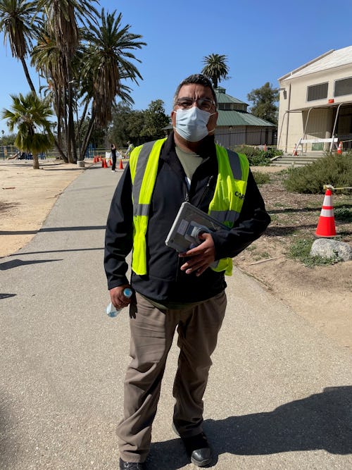 I thought I was going to get COVID from work — I’m a teacher — or going out to bike meetups, but I got it at home from my mom, who got it from her healthcare service provider. She’s 74 and has all of the underlying conditions. I actually came to this site to get tested, and now I work here.