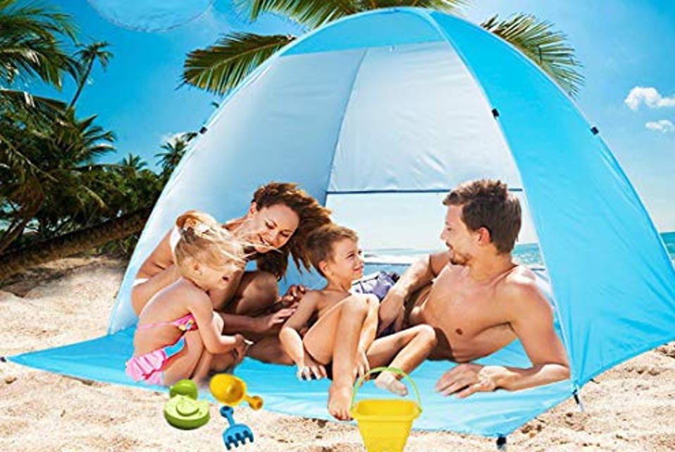 Nobody wants to be the person stuck in the sun all day long on a family trip to the beach. Available in orange and blue, this beach tent from Oileus can fit two adults and two children comfortably. With two built-in windows, it won’t feel stuffy and you’ll get to feel the wind rustle through your hair. To keep it tidy, there’s internal pockets to store sunscreen, drinks and anything else that you don’t want on the ground. Think of this beach tent as a mini cabana.
