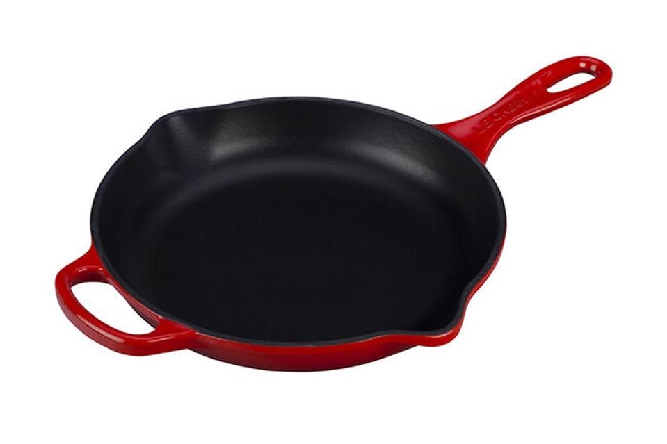 If you’re looking for a skillet that doesn’t require quite as much upkeep as traditional cast iron—or one that comes in a variety of bright colors—you’ll be happy with this classic enameled cast iron skillet from Le Creuset. The French-made 9-inch skillet has a durable nonstick, chip-resistant black enamel finish on the interior (so you can skip the seasoning) and an enameled exterior in 11 color options. It delivers the high-temperature performance and superior searing abilities of traditional cast iron, while being easier to care for and clean in the long run.
