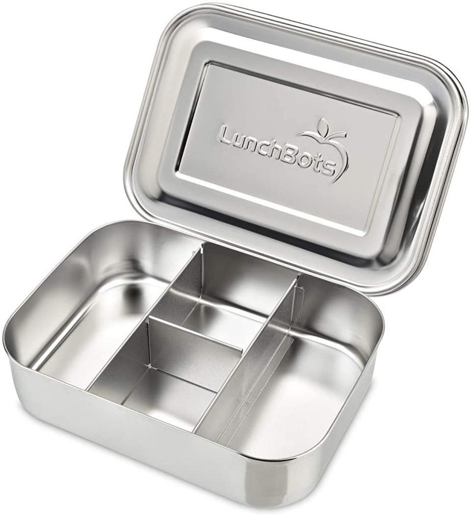 What Reviewers Say: Families like that this is a great size for children. “I use this for my two-year-old's lunch for preschool. It is the perfect amount of food and number of options for her,” states one reviewer. Adults love it too though—“I’m an adult and I bought this for myself to use with non-refrigerated snacks. It does a great job with nuts and raisins and such. The separated tray areas are great for pretzel sticks, etc. It's super solid and I know I won't crush my snacks in my laptop bag.”
