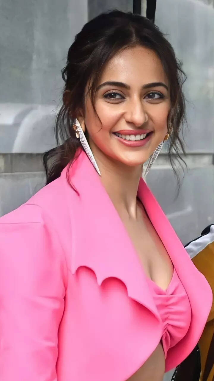 In this photo, Rakul Preet Singh is wearing a pink outfit and smiling effortlessly for the camera.