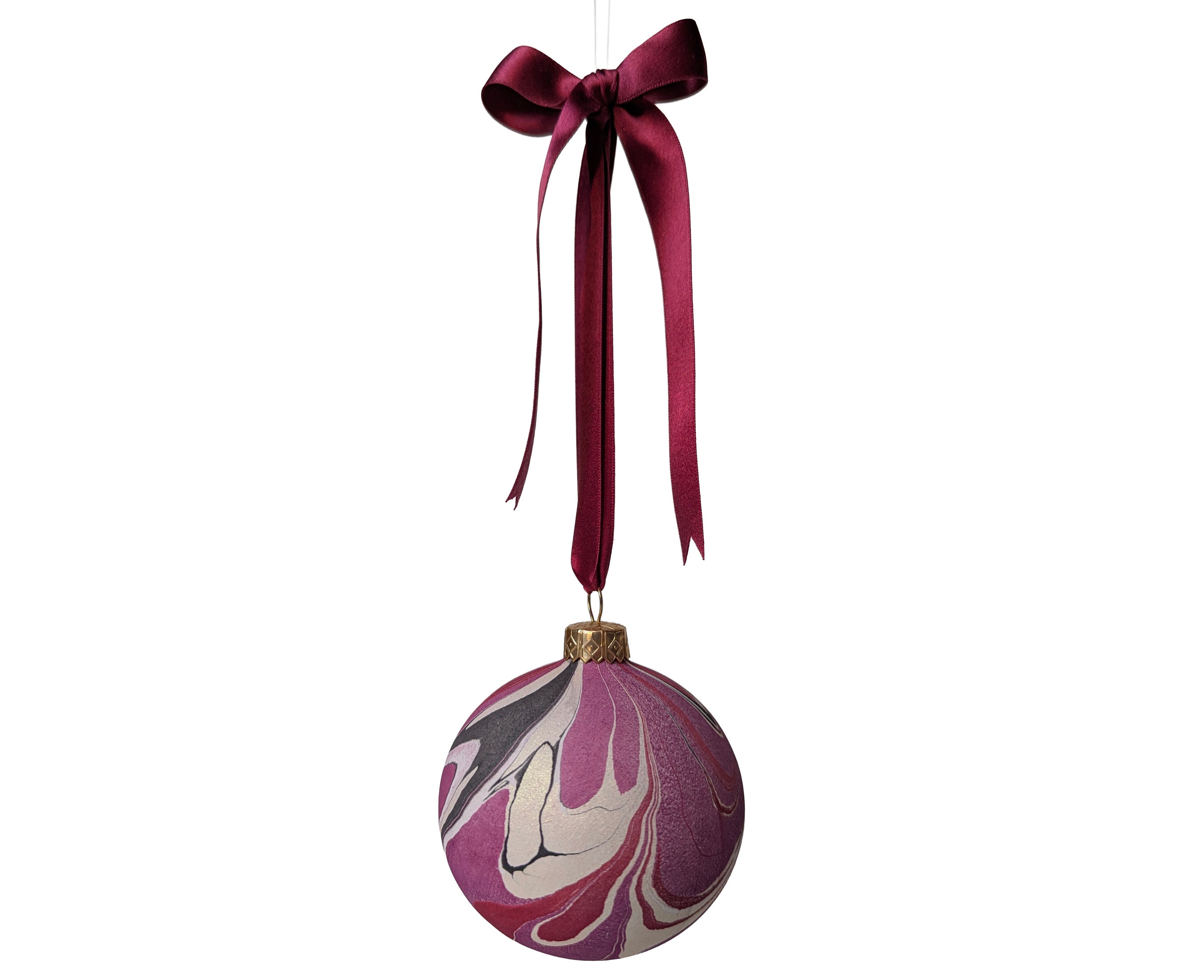 2. Luxury Marbles Christmas Bauble in Bitter Cherry, £29, Webb & Gray
