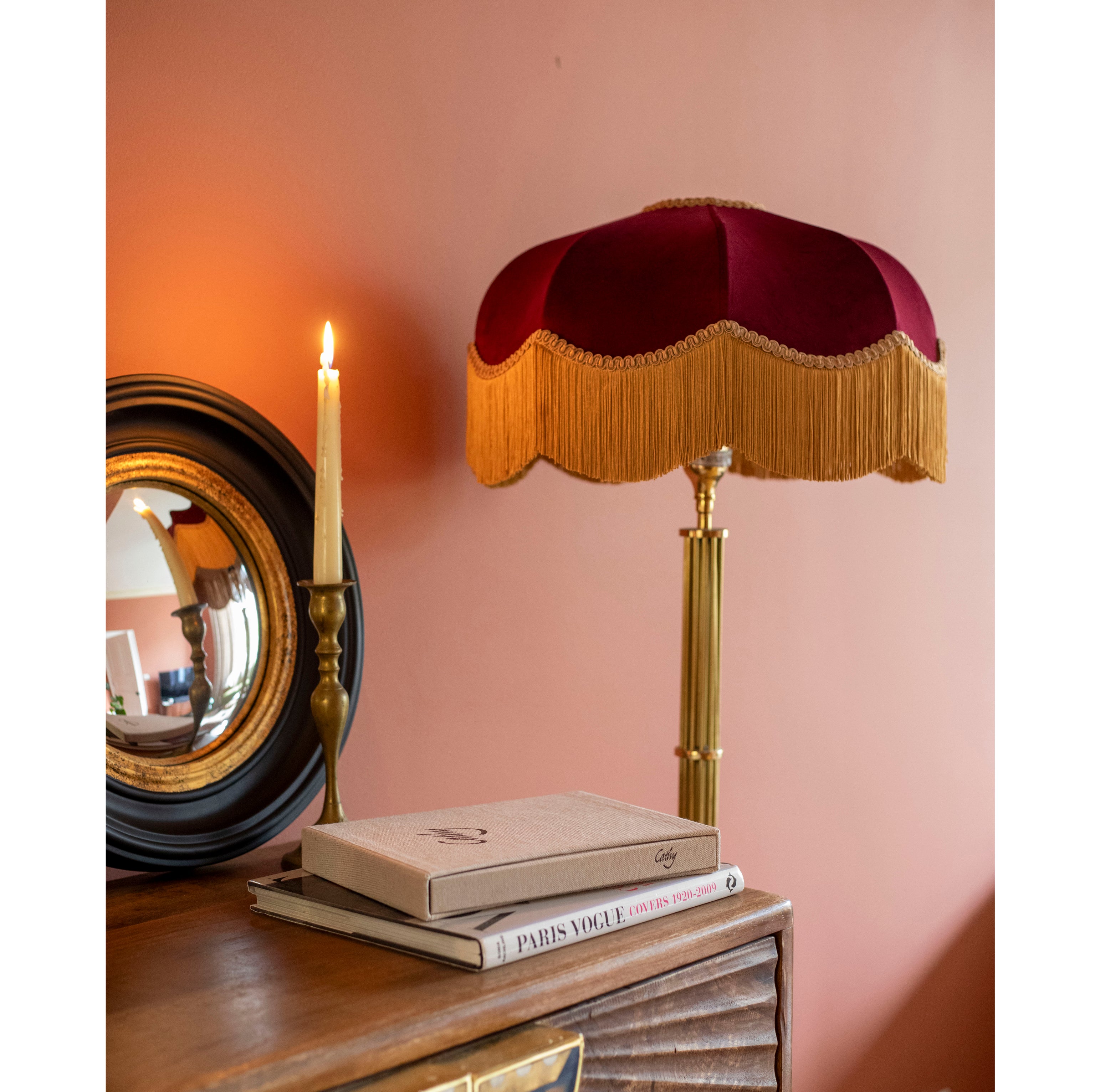 This vintage-inspired tassel lampshade shouts sumptuous, and can be used to dramatic effect with its gorgeous gold fringing, scalloped detail and rich, burgundy hue.