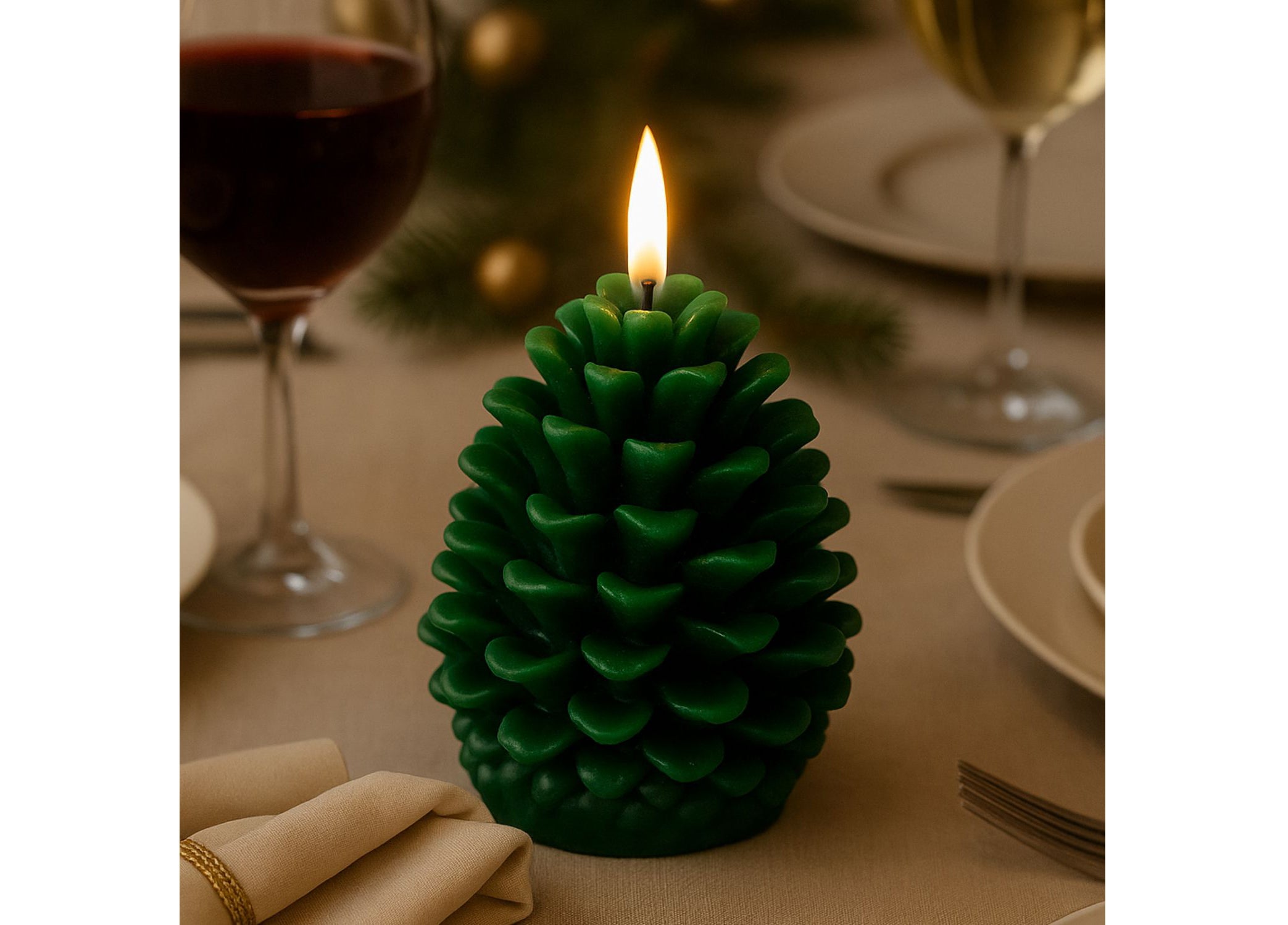 4. Layered Forest Green Real Wax LED Christmas Pinecone Candle, £20, Click Style