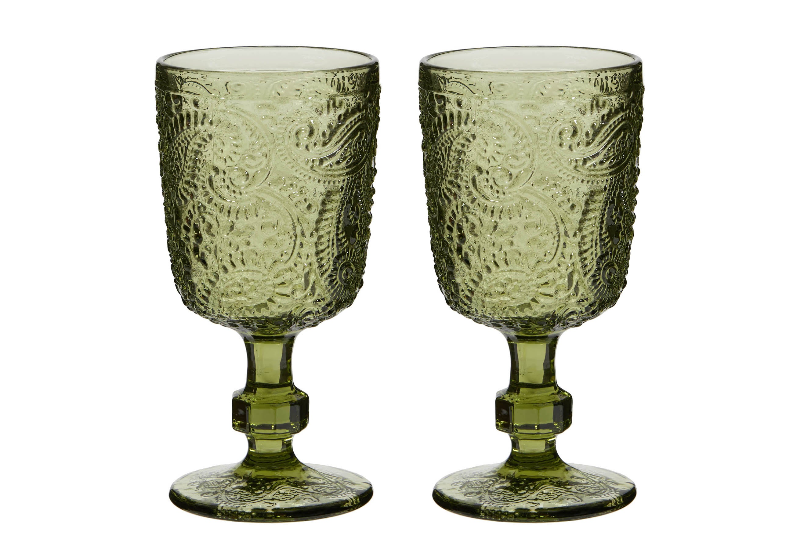 6. Lugo Paisley Green Wine Glasses, £14, (Set of 2), Dibor