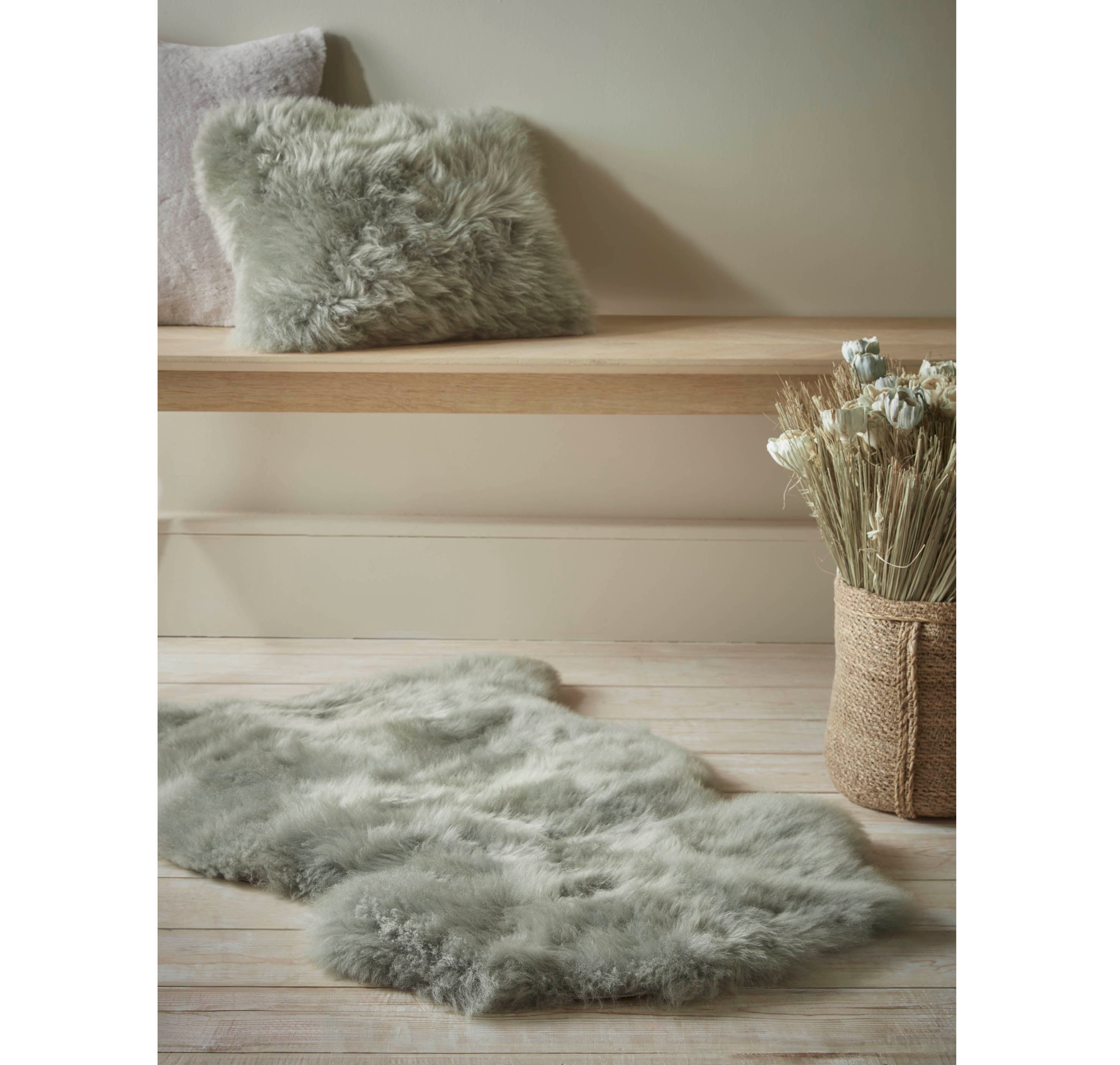 7. Lira Sheepskin Rug – Dusky Eucalyptus, £85, Cox & Cox