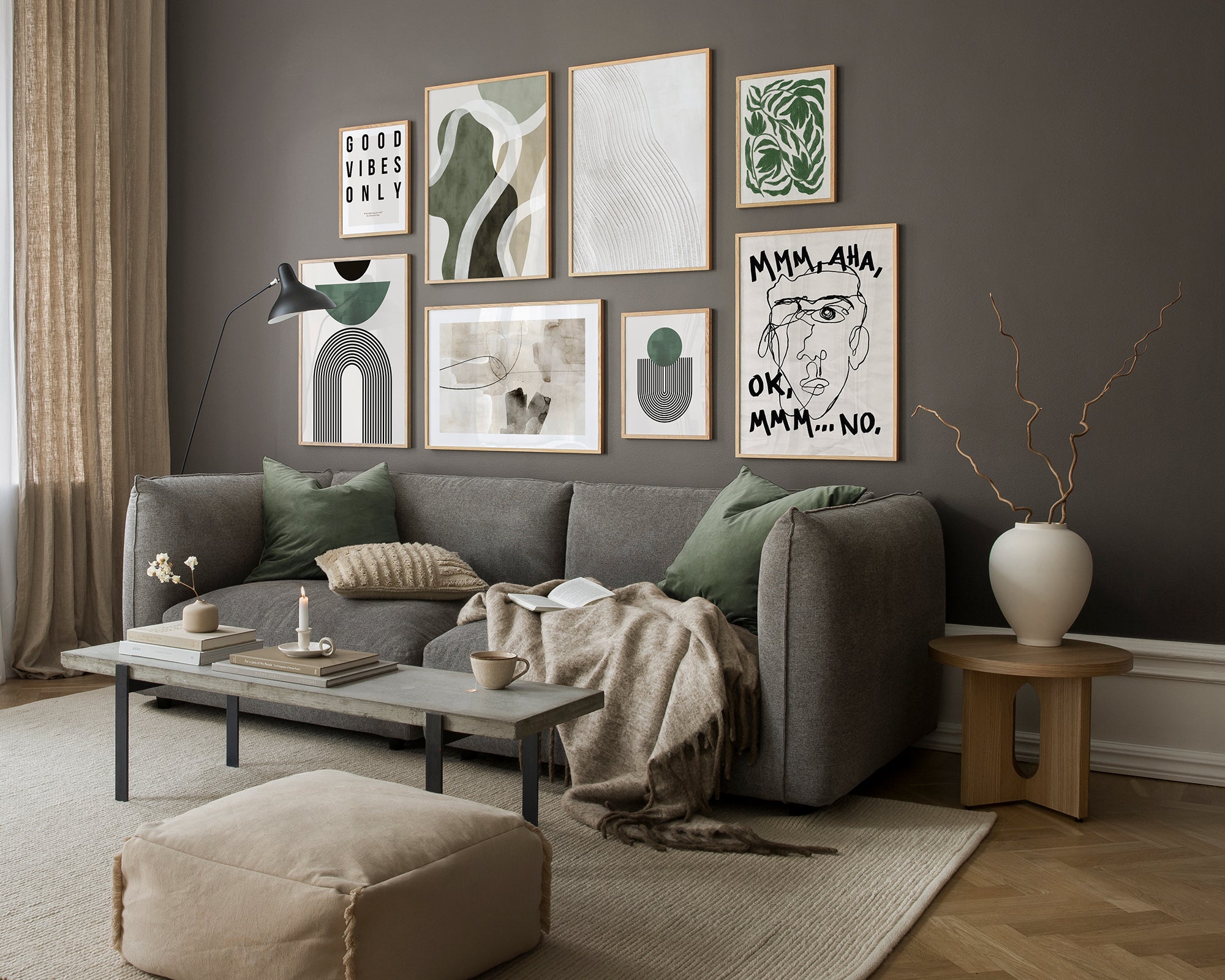 8. Lines in Green Gallery Wall, £497.60, (8 x Posters & 8 x Frames), Desenio