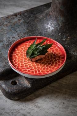 "A dream of Trang BBQ pork" is inspired by chef Joe's fascination with Trang barbecued pork since childhood. "However, when I finally tasted it last year, I was disappointed," he explained. "It was sweet and fatty -- not what I was expecting. So, I've made my own version of it." Barbecue pork in the South is usually eaten with dim sum and chilli sauce, and served with ba chang (steamed sticky rice) infused with seasonal mushrooms and a fermented chilli sauce. To wash it down, 80/20 gives you a taste of their in-house sato, made from southern khao sok (black sticky rice), fermented for two months with anka or red koji to get the colour. Pro tip: save the crackling for the last bit and wash it down with the sato.