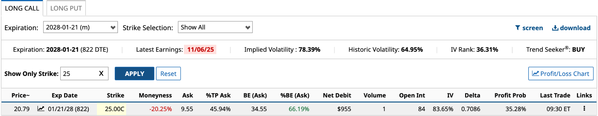 It’s only 20% out of the money and 46% away from the $34.55 breakeven. RUN stock last traded around $35 in September 2022, reducing your upfront cost by slightly more than 50% to $955.