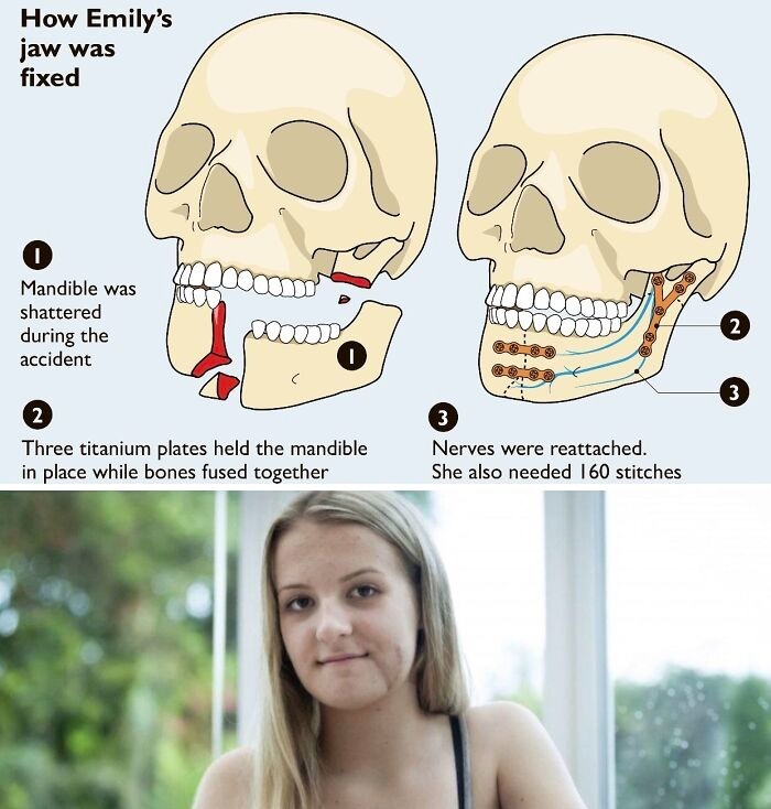 In 2019, a teenager was left with her jaw attached by just a centimetre of skin after a horror horse riding accident. Emily Eccles suffered one of the worst facial injuries her doctors had ever seen outside a war zone after an exhaust popping on a car spooked her horse. The then 15-year-old, smashed her head into a gatepost as she fell off after the horse bolted along a country path, causing her feet to slip out of her stirrups. She found herself holding what remained of the bottom of her face in her own hands. Her reconstructive surgeon Ricardo Mohammed-Ali rebuilt her face during a 6-hr operation.
