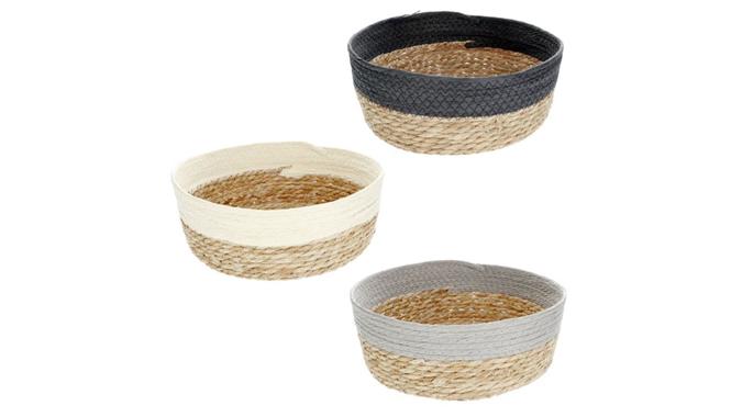 These woven straw baskets are perfect to keep in living areas for safekeeping home essentials to displaying seasonal filler.