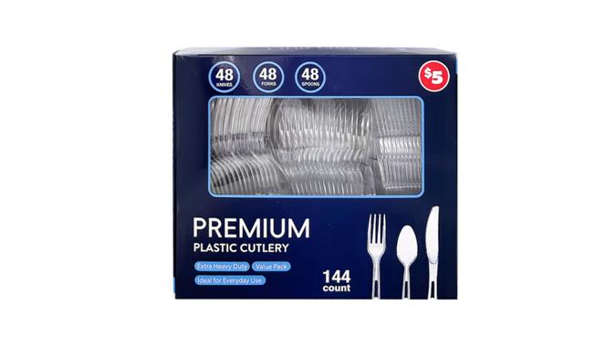 We’re incredibly impressed with this premium plastic cutlery value pack. Each 144-count box includes 48 plastic forks, 48 spoons and 48 knives. It’s like shopping for bulk plasticware at a warehouse club, but a lot cheaper.