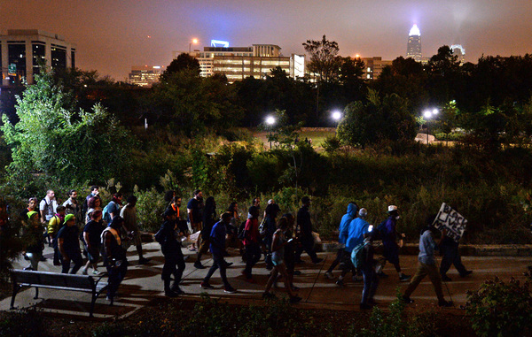CHARLOTTE, N.C. _ Eleven people were arrested late Sunday and early Monday in connection with protests staged in uptown Charlotte, including three from out of state. The protests were in connection with the shooting of an African American suspect last week by a Charlotte Mecklenburg police officer.