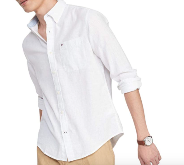 Tommy Hilfiger Men's Linen Long Sleeve Button Down Shirt in Classic Fit