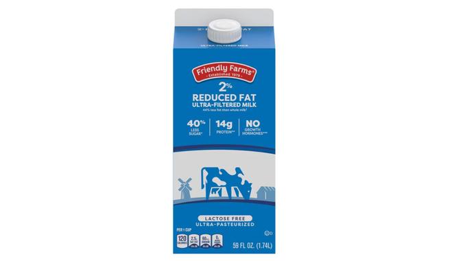 Aldi shoppers save as much as $1 buying lactose-free 2% milk from the Friendly Farms brand.
