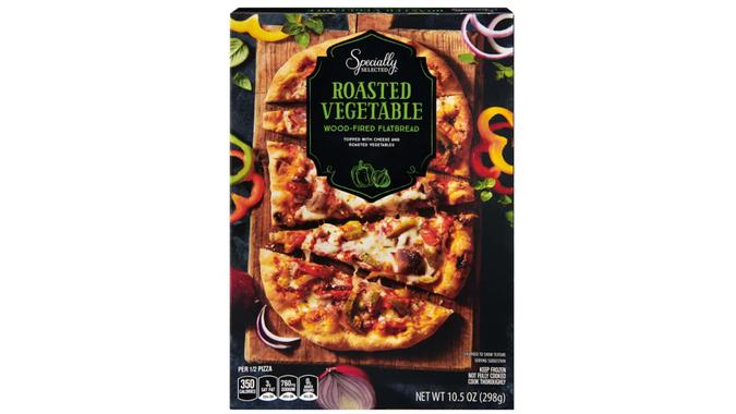 Cut down on pizza takeout costs by keeping a box (or two) of roasted vegetable flatbread in the freezer. Each wood-fired flatbread cooks quickly and comes covered in cheese and vegetable toppings.