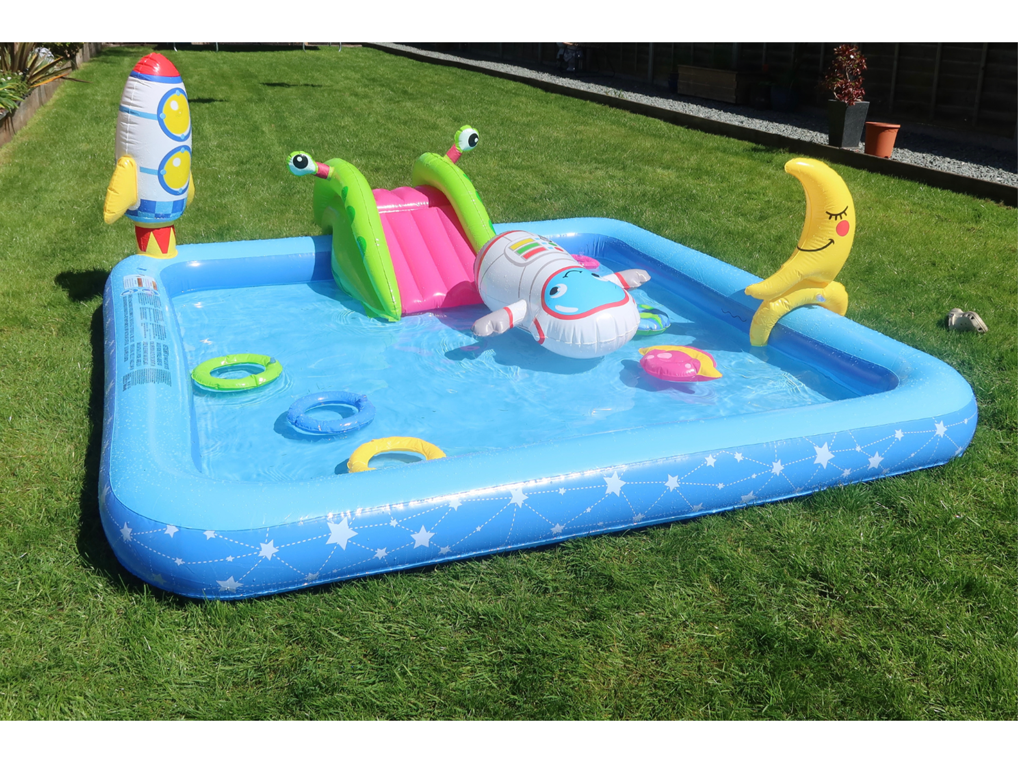 While we struggled to get the moon inflatable to stay upright on the side of the pool, our two and 4-year-old testers loved playing hoopla with the inflatable rings, while the space man's ‘bop bag’ was repeatedly clambered over and jumped on without showing any signs of damage.