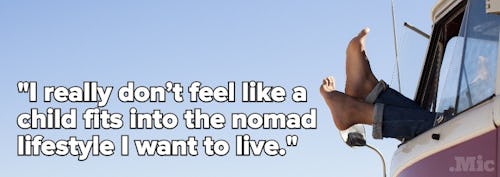 "My dream is to visit all 195 countries in the world (been to 23 so far) and I really don't feel like a child fits into the nomad lifestyle I want to live."