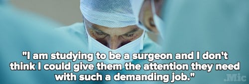 "I don't want to have kids because I am studying to be a surgeon and I don't think I could give them the attention they need with such a demanding job."