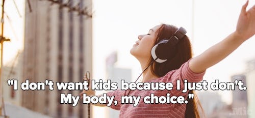 "I don't want kids because I just don't. I shouldn't have to explain my reasoning, or even have a reason at all: my body, my choice."