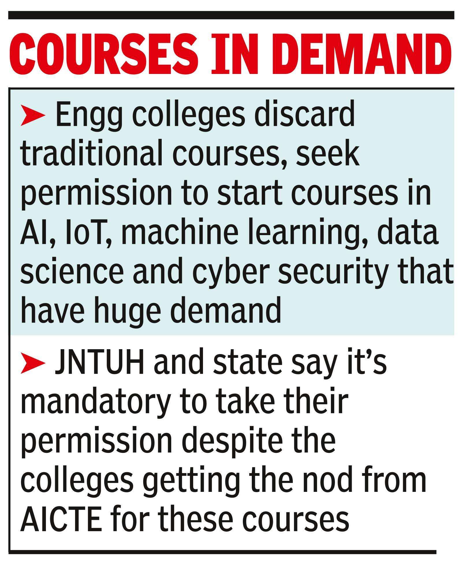 Last year, 125 engineering institutes had got permission from the state to start new courses in artificial intelligence, machine learning, data science, cyber security and internet of things (IoT) introduced by JNTU-Hyderabad.