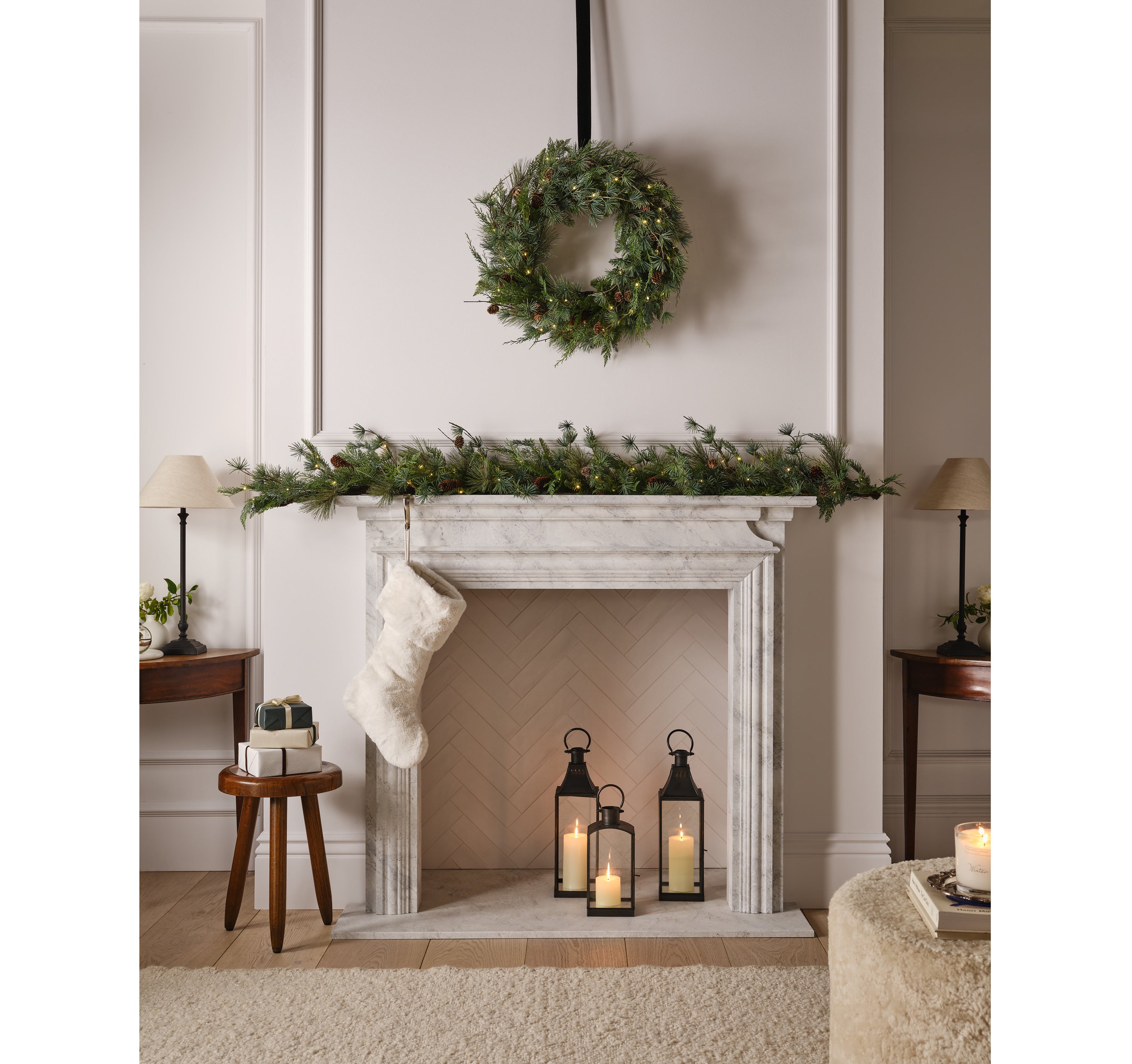 5. The White Company Ultimate Fir Tree 60cm Wreath, £150; 180cm Pre-lit Ultimate Fir Tree Garland, £95; rest of items from a selection, The White Company