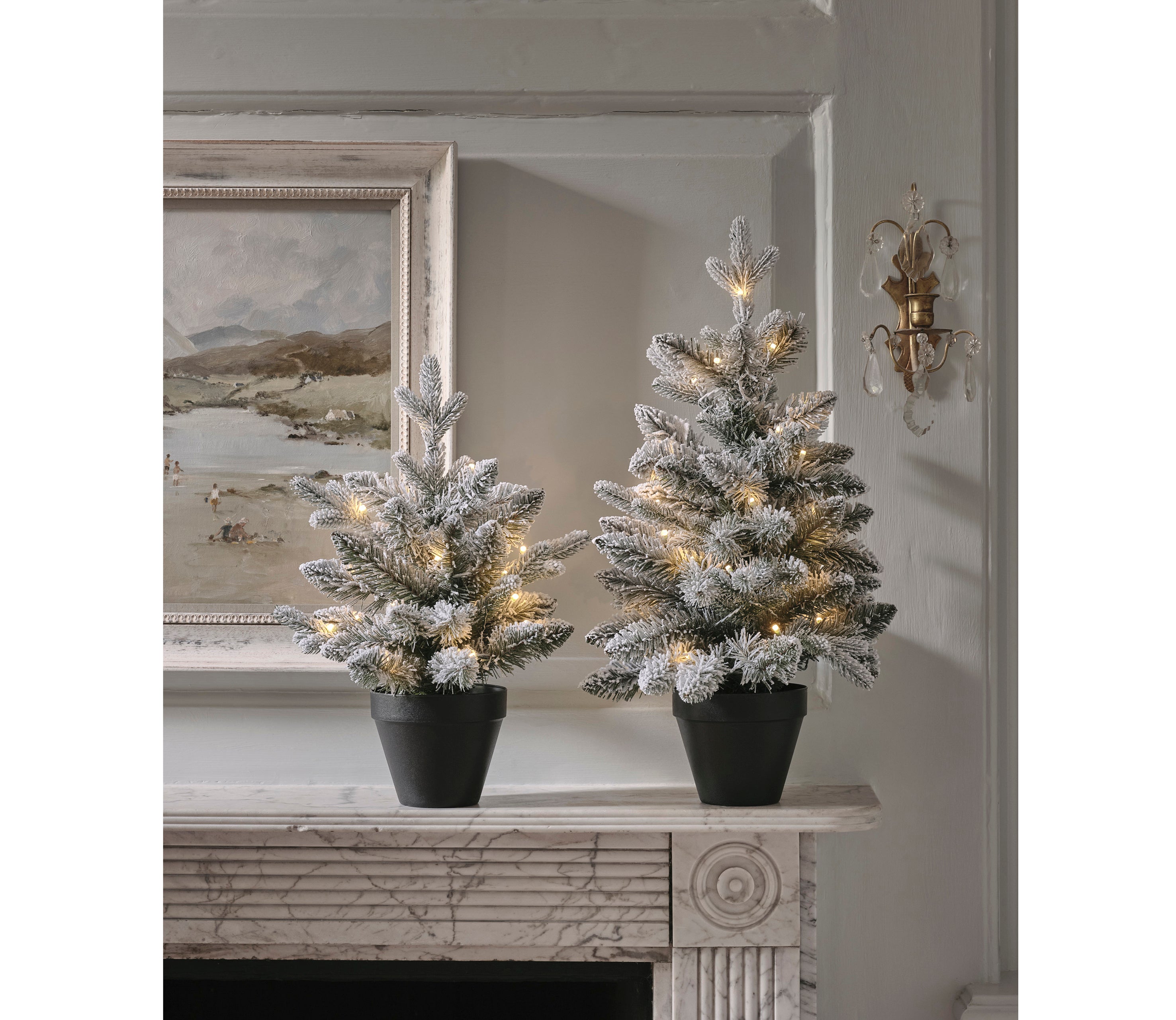 If you’re short on floor space, this decorative duo will put some wow factor into window dressing. With snow-coated branches and warm white LEDs, they can be styled either side of a sofa, or grouped on shelves with other themed items. Think chalet-style décor.