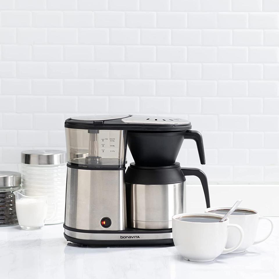 The Bonavita Connoisseur brews coffee at a precise temperature and has an optional pre-infusion mode for better flavor.