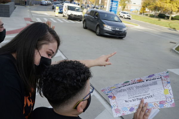 Friends and family drove by in a parade of cars, cheering and yelling for him. Some held posters and wrote encouraging messages on their cars. Hospital staff, even those who didn't work there anymore, were also present to wish him well for the future.