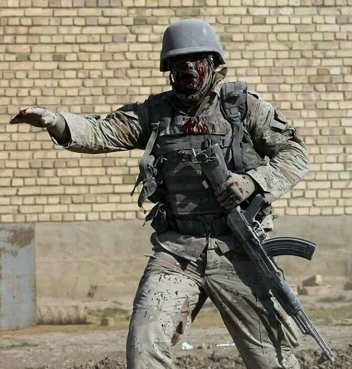 Shell-shocked Iraqi soldier after the explosion of an improvised device, 2008