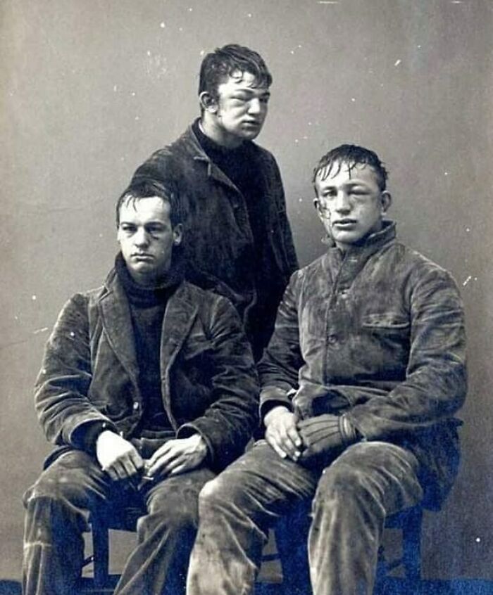 Princeton university students after a snowball fight, 1893. In the photo are, from left, Darwin R. James, John P. Poe, and Arthur L. Wheeler. Before the turn of the 20th century, it was tradition for Princeton students to have snowball fights between the freshman and sophomore classes.