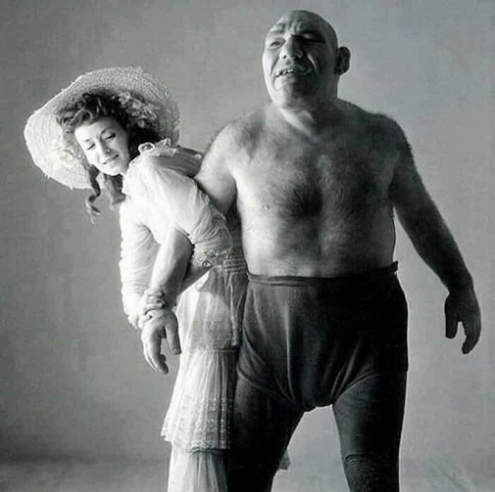 Pictured above is Maurice Tillet (1903-1954), most commonly known by his professional wrestling name The French Angel and his wife Olga. For years many have believed that William Steig, the creator of Shrek, drew his character from the professional wrestler Maurice Tillet. Dreamworks has neither confirmed nor denied this, but the similarities are uncanny. During his wrestling career, Tillet was a leading box office draw in the early 1940s and was twice World Heavyweight Champion in the American Wrestling Association run by Paul Bowser in Boston.