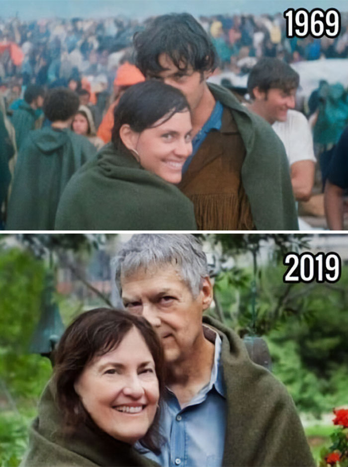 Mother holding her daughter at a Budapest market in 1987. 30 years later, they recreated the photo. The photographer is Atilla Manek. The subjects are his wife and daughter.