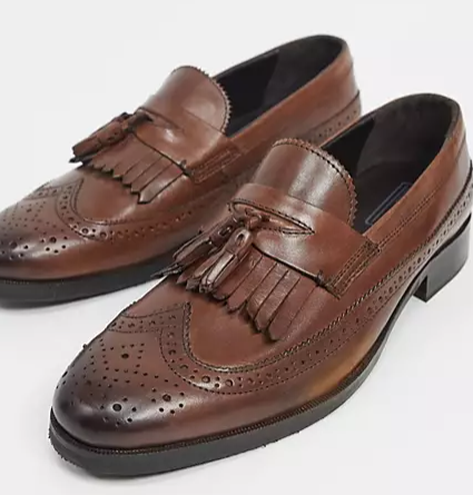 ASOS DESIGN loafers in brown polished leather with brogue detail