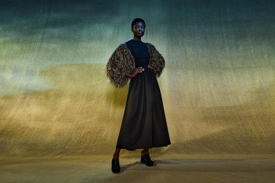 British-Canadian designer Edeline Lee returned to her roots for Autumn/Winter 2022, digging deep into her design archive, even using styles from her fashion college days. The designer is celebrated for her gorgeous use of color but this season the collection focusses on cut and shape, with looks in full monochromatic blacks with flashes of ivory and bronze. True to the label’s Top 4 rating for sustainability at London Fashion Week, all the pieces are cut and made by hand in London and many of the fabrics are recycled. The brand has a legion of high profile fans including Alicia Vikander, Olivia Colman, Sharon Horgan, Sally Hawkins, Helen Mirren, Gemma Chan, Taylor Swift, Phoebe WallerBridge and Solange Knowles.