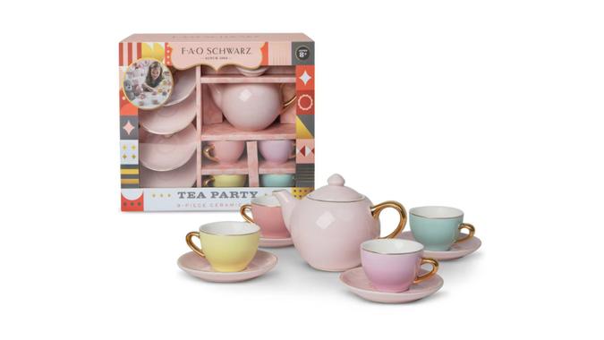 7. FAO Schwarz Hand-Glazed Ceramic Tea Party Set