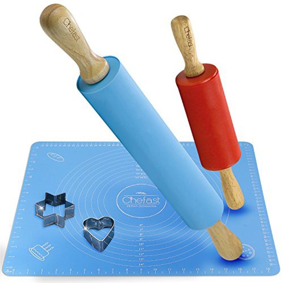 Many rolling pins are too large and unwieldy for littles to easily manage. This set comes as a pack of two—a traditional 17-inch size and an 8.5-inch one—so kitchen helpers have the option of using a smaller pin that better fits in their little hands. Plus, the rollers are made of non-stick silicone, and the set comes with a flexible, BPA-free silicone pastry mat with handy measurements printed on it.