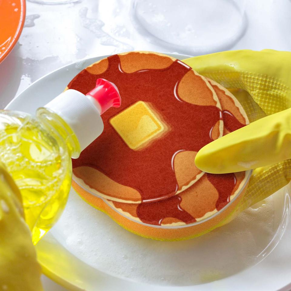 Cooking is just the first step. Motivate your little one to help with meal cleanup with these fun, multi-layer scrubbers. The set of three sponges feature silly, vintage-inspired breakfast food shapes: pancakes, bacon and eggs.