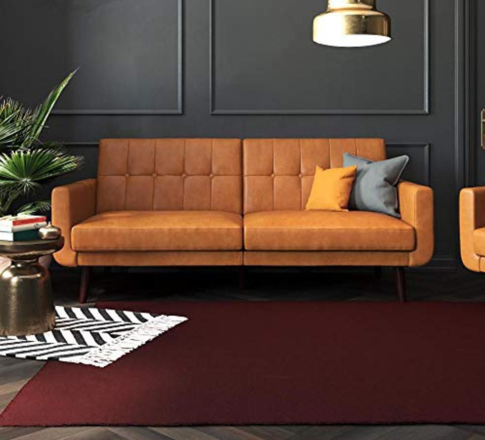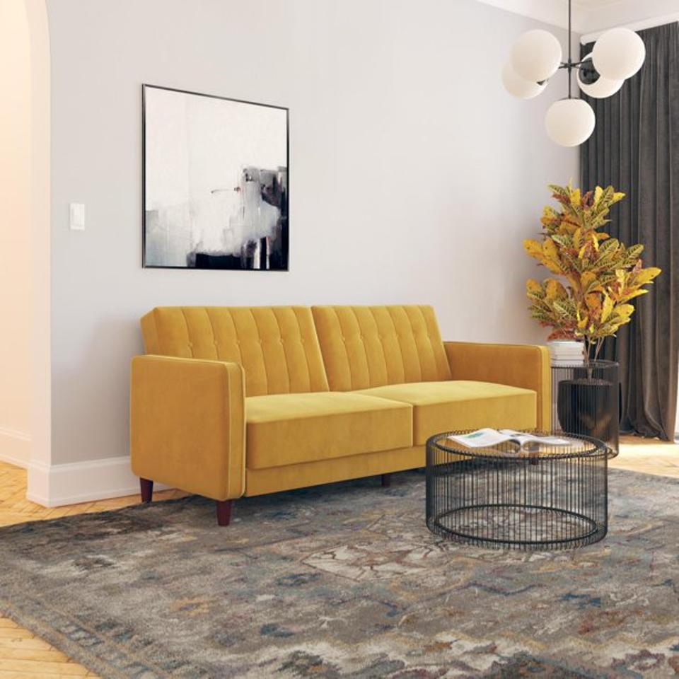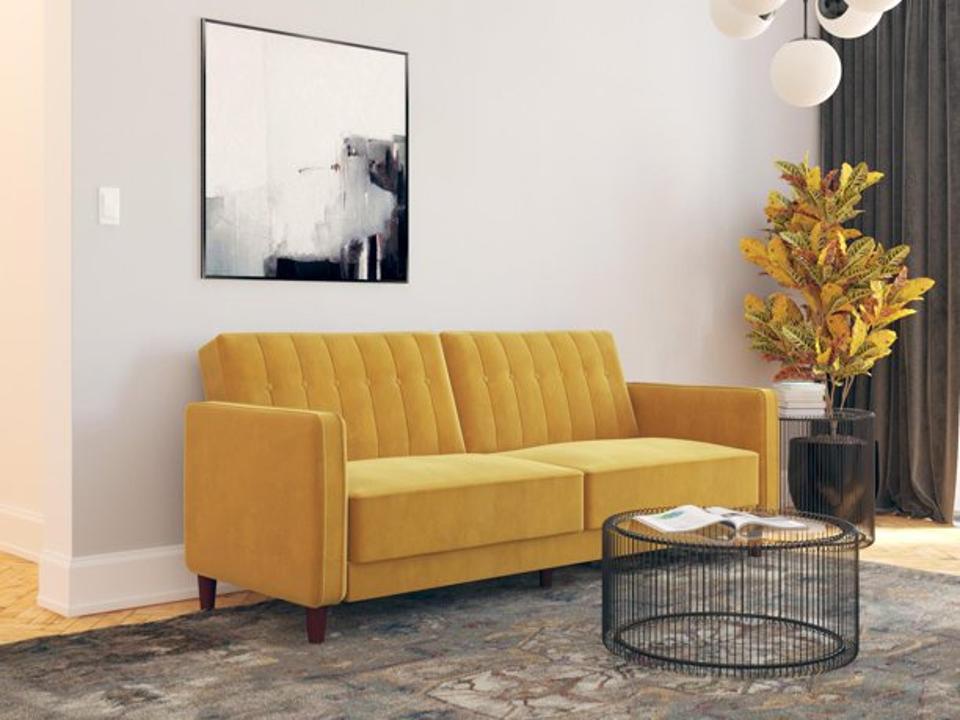 This velvet futon switches things up with a tufted back and smooth seat. While it’s available in seven colors, none catch our attention quite as much as the ’70s-inspired mustard hue.