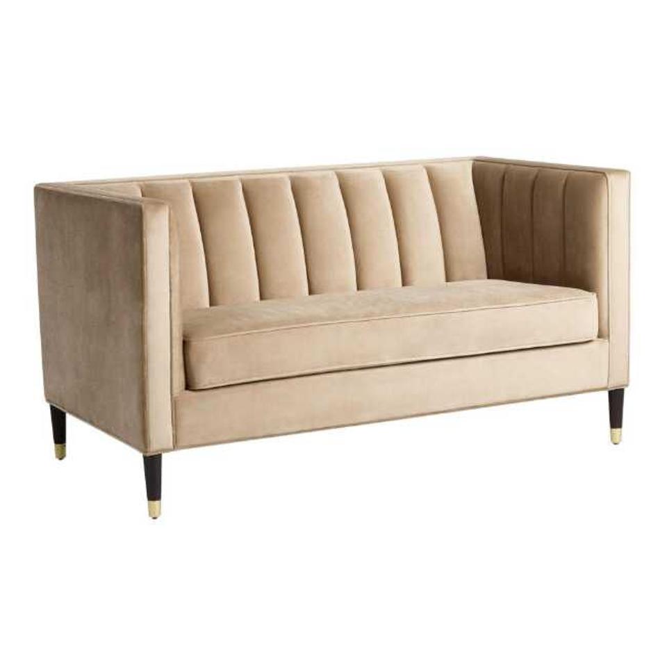 This cozy rectangular loveseat looks like something that you’ll want to sink into every time you walk past it. And this sophisticated camel color? We’re swooning.