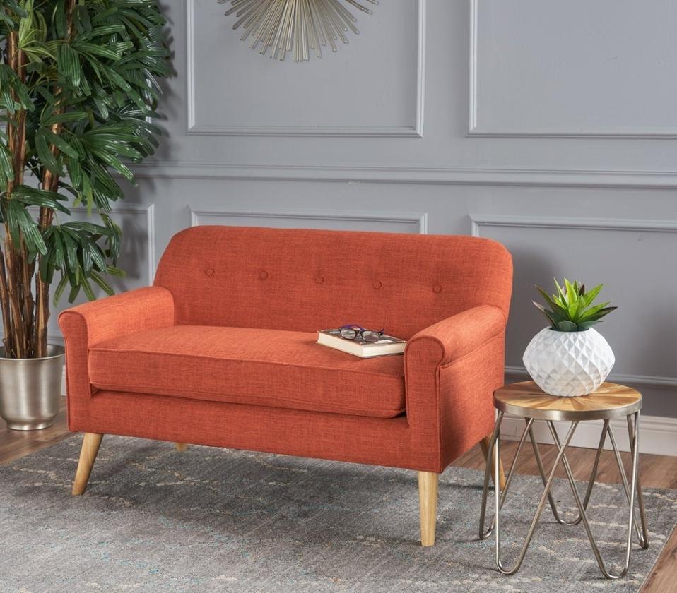 Working with a smaller space? This curved-back loveseat that measures just over 4.5 feet is a great option. Plus, it’s available in beige and light blush, so it will help brighten up your space.