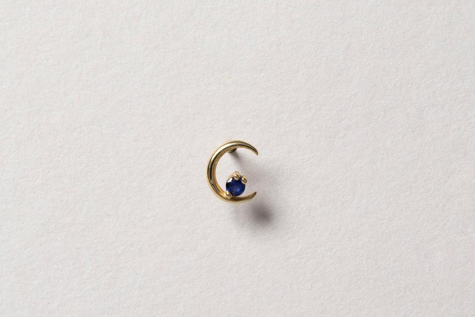 Mociun has become renowned for the unique pieces they dream up for everything from engagement rings to everyday jewelry staples. Their half moon earring stud is sold as a single earring with the intention of styling among multiple piercings, or to mix and match with another stud. Each gemstone is perfectly placed on the inside of the half moon, providing the perfect balance of classic and creative design.