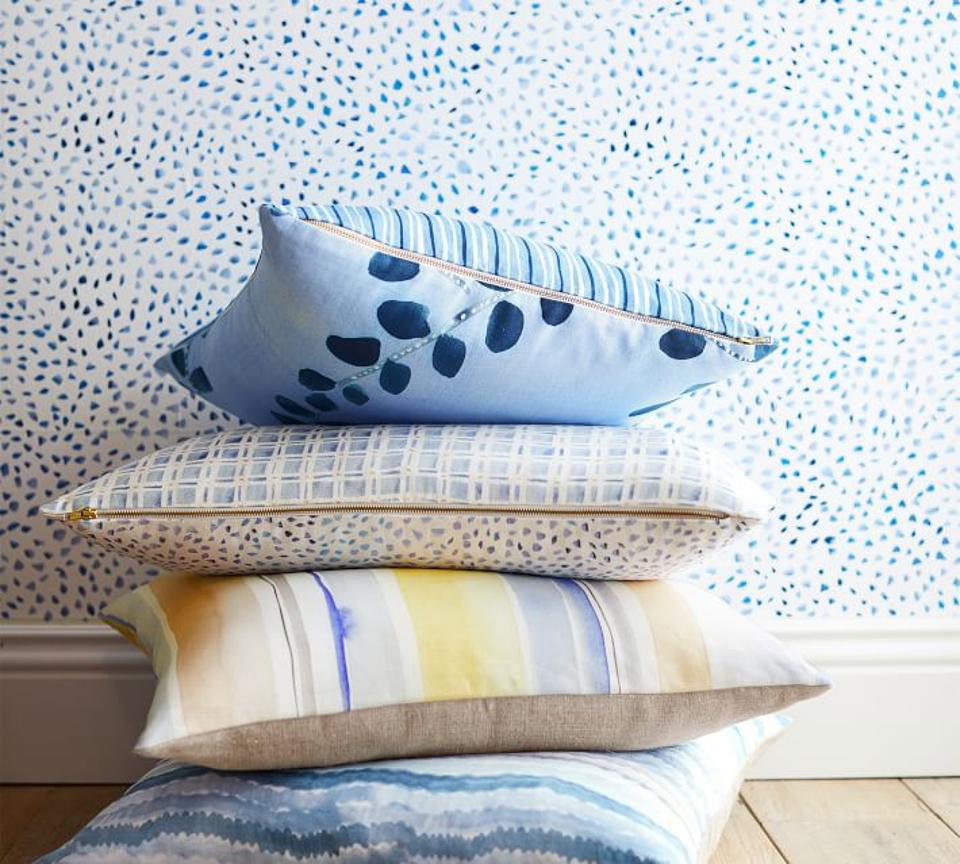 For those times when you’re eyeing polka dots but don’t want something with such definitive circles, there’s this removable polyester option from designer Rebecca Atwood. The design features whimsical, hand-painted tonal flecks in soothing blue tones. Fun fact: The look of the wallpaper was originally painted in Atwood’s sketchbook before making its way onto rolls. It’s also available in grey and peach shades.
